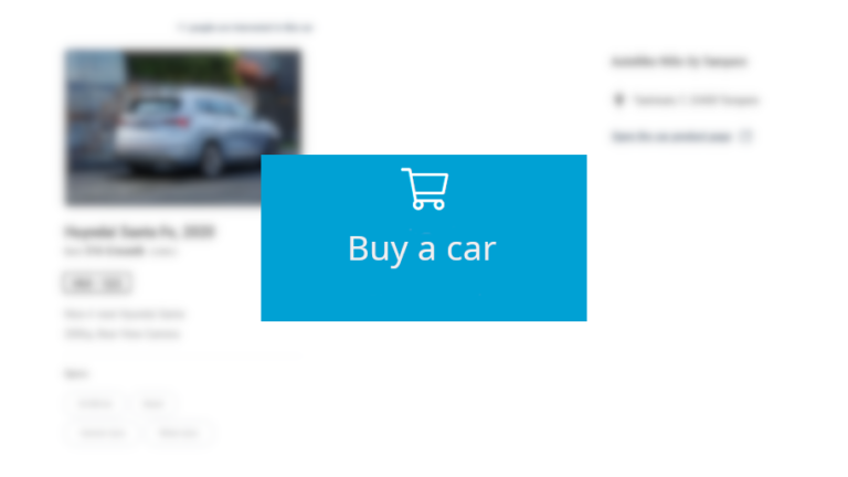 On the car shop's website, you'll find a button like "Buy a car" or "Request an offer". When you click on it, the car you're interested in gets added to your shopping cart. Smilee's chatbot, live chat, and WhatsApp chat all support the purchasing process.