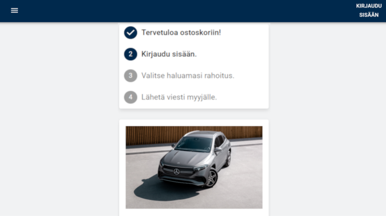 Autokaupan verkkosivuilta löytyy painike, kuten “Osta auto” tai “Pyydä tarjous” jota painamalla asiakkaan haluama auto siirtyy ostoskoriin. Smileen chatbot, live-chat sekä WA-chat on mukana tukemassa ostopolkua.
