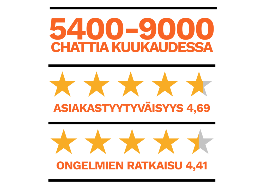Suosittelemme kaikille asiakkaillemme asiakaspalvelutilanteiden jatkuvaa arviointia. Käytännössä jokaisen chatin päätteeksi chattiasiakkaalta kysytään kuinka onnistuneena hän piti asiakaspalvelutilannetta ja ratkesiko asia, jonka takia asiakas chatin aloitti. Mittarina voidaan käyttää myös muita vaihtoehtoja, esim. NPS.
